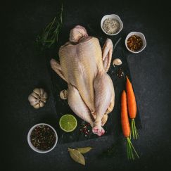 Păsări de curte crescute în aer liber - pui, găină, curcan, rață. Fără antibiotice, cu hrană naturală, ca la țară.
